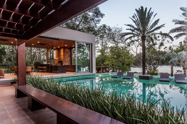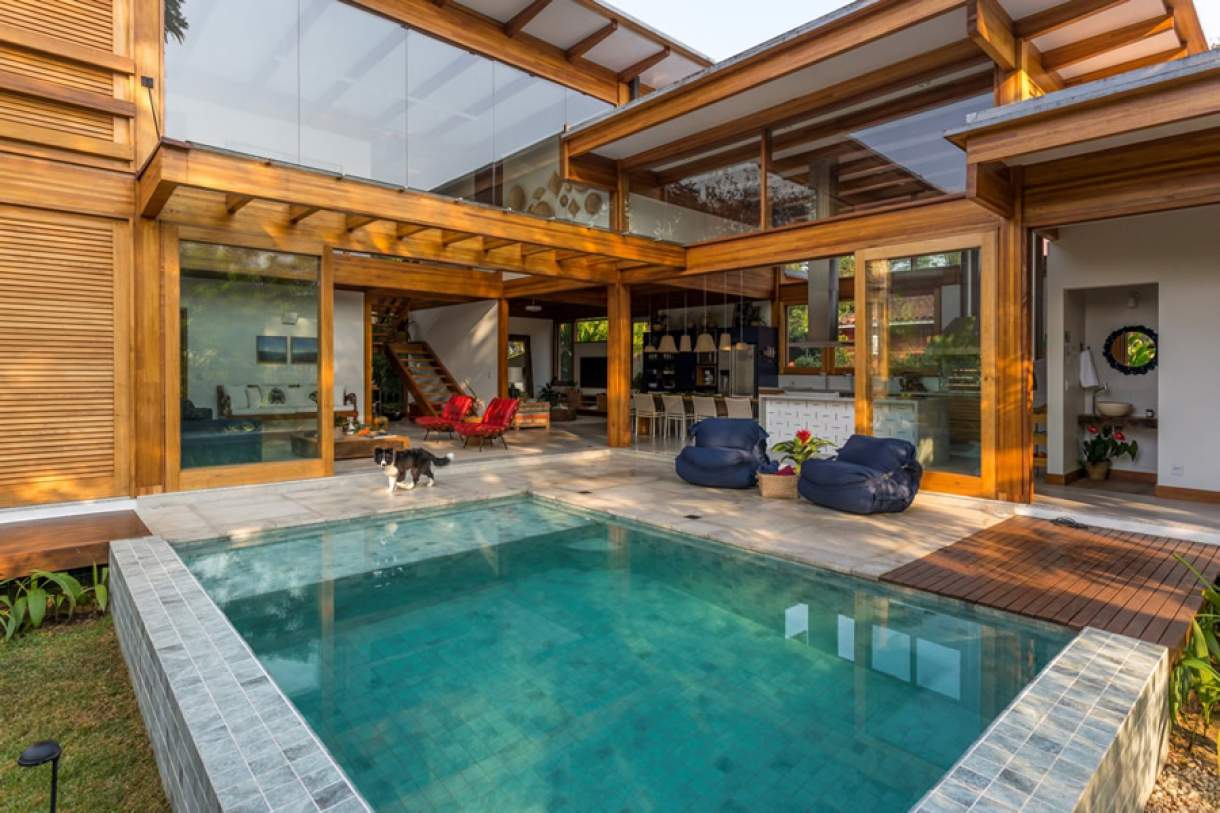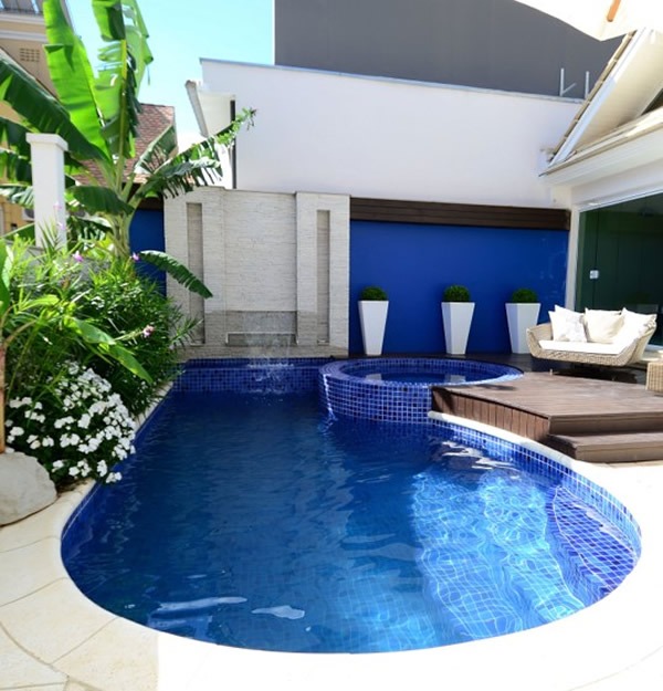 Mais do que um espaço de diversão e encontro, a área da piscina também pode ganhar uma aura de relaxamento e bem-estar, como uma espécie de spa privativo mesmo. Principalmente em ambientes com a presença de piscinas menores, ou com hidromassagem inclusa, essa atmosfera intimista tende a aumentar. Portanto, vale a pena pensar com carinho na possibilidade de criar um cantinho especial como esse.