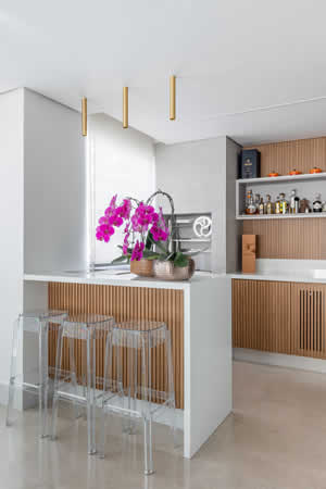 Projeto de apartamento exalta a personalidade receptiva dos moradores e remodela o décor aproveitando parte da estrutura existente