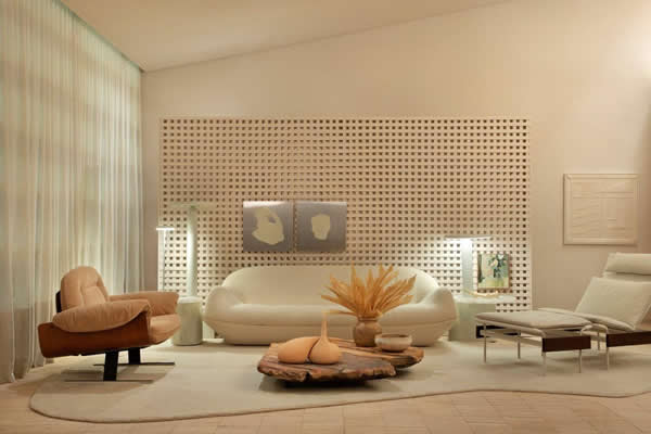 Barbara Dundes | CASA MORADA: Com a premissa de ressignificar o morar e trazer a verdadeira essência do lar, onde a casa é considerada um templo, um lugar de aconchego, afeto e vida, a arquiteta se inspirou no texto “Casa Arrumada”, de Carlos Drummond de Andrade, para apresentar o espaço de 82m² em ambientes neutros, fluídos e focado no bem-estar, dividida em varanda, living, cozinha, sala de jantar e suíte com jardim.