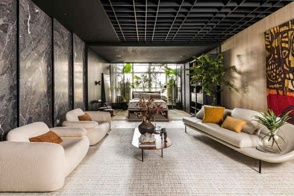 Érica Salgueiro | SOLITUDE: Com a premissa de um ambiente para se reconectar consigo mesmo, podendo assim desfrutar da calma e da paz que só podem ser encontradas quando estamos sozinhos. A arquiteta assina o estúdio de 66m², dividido em três ambientes, o espaço mostra um equilíbrio entre dormitório, living e cozinha, trazendo o conceito da palavra “solitude” e sensação de bem-estar ao espaço, Érica imprimiu no ambiente uma atmosfera elegante e sofisticada.