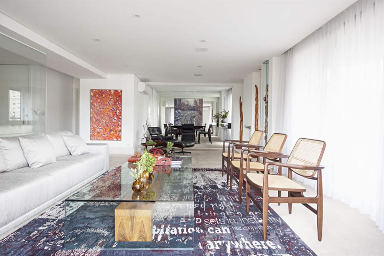 Tapetes podem ser neutros ou cheios de personalidade e devem ser escolhidos, costumeiramente, após a compra do mobiliário. “Mas se o cliente já possuir uma peça que seja herança de família, por exemplo, o décor será feito pensado para ela”, explica Ieda Korman, que complementa.