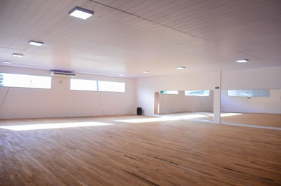 No mesmo edifício de lutas, há a sala de ginástica e danças que traz um amplo espaço revestido com piso de vinílico, escolhido pela capacidade de absorver o impacto e reduzir o risco de lesões nas articulações, além de espelhos nas paredes para permitir uma melhor visualização aos atletas e dançarinos para corrigir sua postura, técnica e expressão corporal.