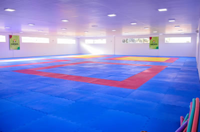 Outro espaço inédito é o dojo, ou também chamado de sala de lutas destinado à prática de diversas modalidades de artes marciais, como Judô, Karatê, Taekwondo, Jiu-Jitsu, lutas olímpicas, entre outras. A sala de lutas possui um tatame que proporciona uma superfície segura com amortecimento adequado para a prática de quedas, rolagens e outros movimentos de luta.