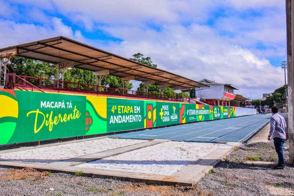 O revestimento da pista é feito de material sintético emborrachado proporcionando uma superfície resiliente que minimiza o impacto no corpo do atleta | Projeto do escritório Effect Arquitetura com a Prefeitura de Macapá | Foto: Jesiel Braga