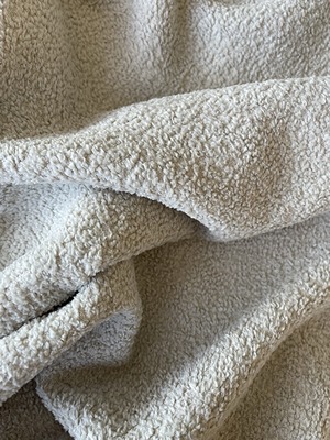 Palavra de origem francesa, o bouclé ganhou notoriedade quando a aclamada estilista Coco Chanel adotou o material para criar o marcante conjunto de alfaiataria composto pelo casaco e saia, durante os anos de 1950. Na fluidez dos caminhos que cruzam a moda e a decoração, conquistou o mundo com sua composição de fio retorcido, trançado em ciclos, formando arcos regulares | Foto: Tati Ogava