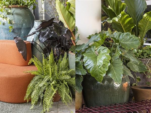 Ainda de acordo com a paisagista, as plantas exóticas são aquelas introduzidas em uma área ou ecossistema onde não ocorreriam naturalmente. “Elas são originárias de outros lugares, geralmente de outros países ou continentes”, diz. Para a edição atual da CASACOR, ela e João Jadão trouxeram variedade como a ripsális (África/Sri Lanka), palmeira-fênix (Ásia/Tailândia), palmeira-traquicarpo (Ásia/China), inhame preto brilhante (Ásia Tropical), areca-bambu (Madagascar); jiboia (Oceania) e a alocasia portora.