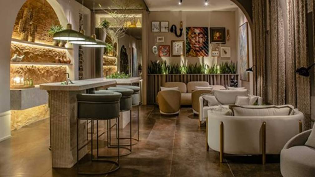 A estilização do Lounge seguiu de maneira a equilibrar a estética rústica e intimista com destaque para as formas orgânicas. Os arcos e os elementos presentes no teto harmonizaram um espaço intimista, “para proporcionar muitos encontros informais, criando espaços independentes e integrados ao mesmo tempo”, completam as profissionais.