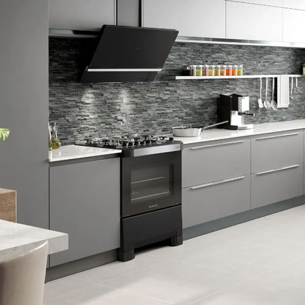 O fogão Mueller 5 bocas Piacere Vetro, com mesa em vidro temperado, reflete a praticidade de limpeza no dia a dia. Com este produto, o morador passa a se preocupar apenas com o cardápio das refeições | Foto: Divulgação Mueller