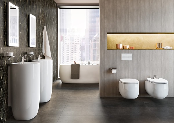 Outra coleção de Roca bastante celebrada é a Beyond, que conta com a dupla bacia sanitária e bidê suspensos | Foto: Divulgação Roca