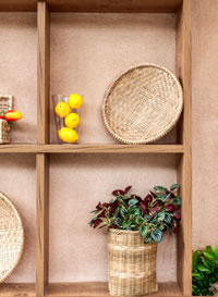 Na sala de estar, a junção de caixas de madeiras que acondicionavam os rótulos de vinhos tornou-se uma fase para explorar a pintura com ampla variedade de cores e padrões.
