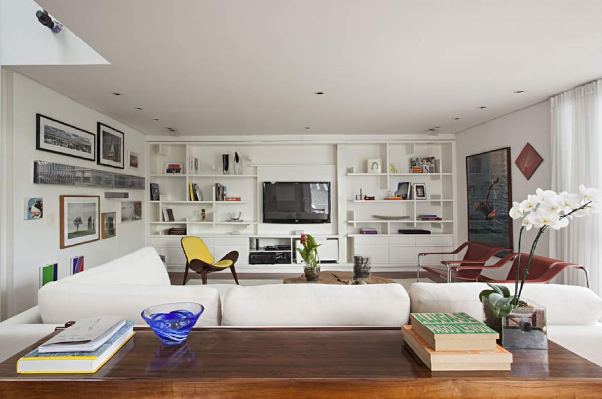 A ideia de nichos coloridos na sala de estar é uma ótima opção para trazer vida e um viés despojado aos ambientes.