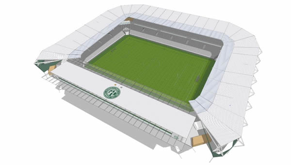 Projeto de modelagem 3D do novo estádio do Guarani Futebol Clube, localizado no interior de São Paulo, também conta com reformas previstas no Master plan | Projeto da Effect Arquitetura | Foto: Divulgação