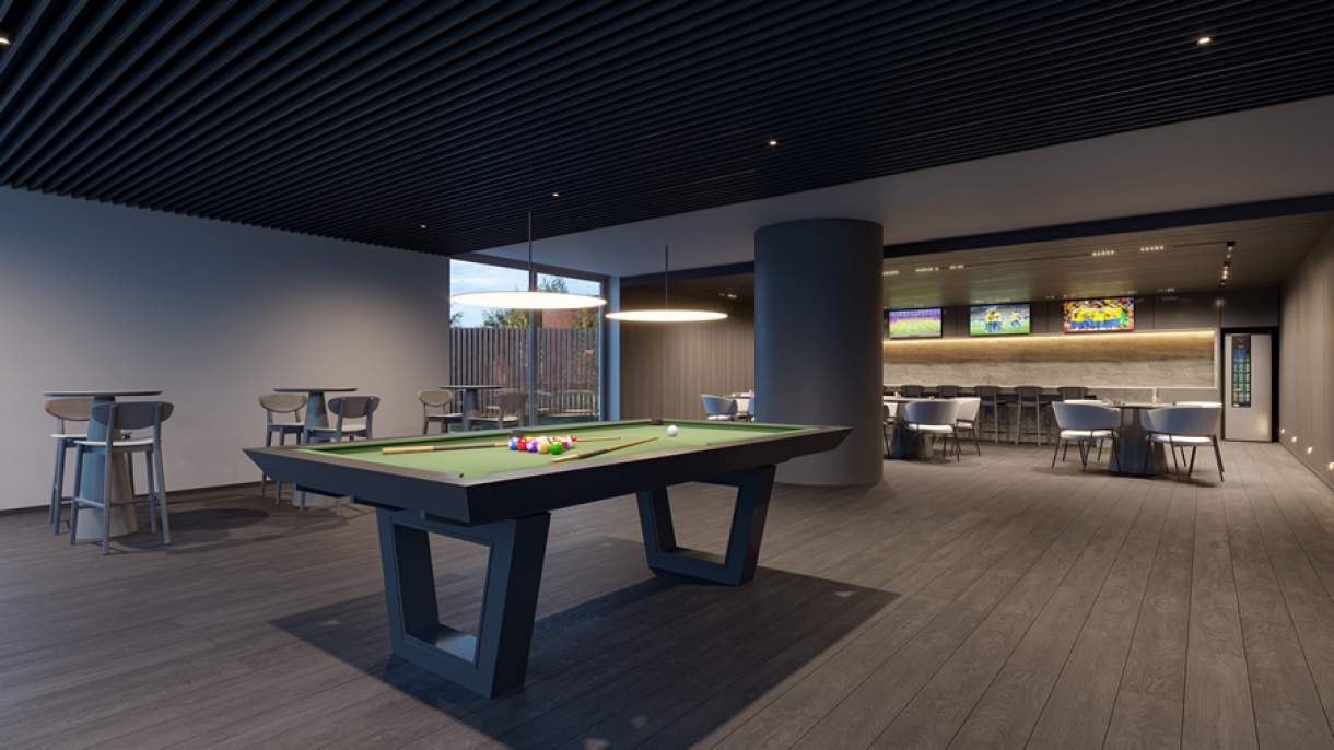 Como o conceito de home club valoriza ambientes amplos e completos para receber familiares e amigos, o sports bar se destaca nos empreendimentos da A.Yoshii. “Ter um bar em casa é o sonho de muitas pessoas. Por isso, alguns de nossos empreendimentos já contam com sports bar equipado e pronto para o uso”, explica a arquiteta. Esses espaços climatizados são ideais para assistir jogos, com mesas para jogos de cartas e tabuleiro, sinuca, televisores para acompanhar jogos ao vivo, frigobar, poltronas e muito mais.