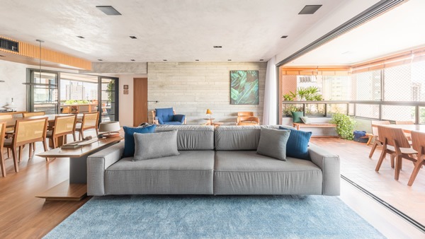 Localizado na Vila Romana, zona oeste da capital paulista, o projeto focou-se no estudo de soluções detalhadamente pensadas para, além de dispor de uma área social muito generosa e muito bem explorada, o apartamento também se conectasse com a praticidade e escolhas que o deixaram com uma estética sofisticada. Como uma ode à contemporaneidade, marcenaria e os móveis soltos exibem formas delicadas e modernas que contribuem para esse ar up to date e atemporal, idealizado dentro de uma paleta cromática que destaca neutralidade da madeira e nuances de cinza e azul.