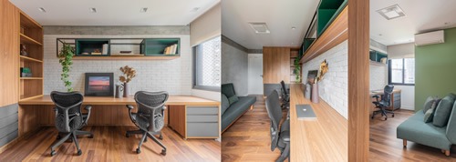 O arquiteto Pietro Terlizzi conduziu mais uma finalidade para o quarto de hóspedes: o home office duplo para as atividades profissionais do casal | Foto: Guilherme Pucci