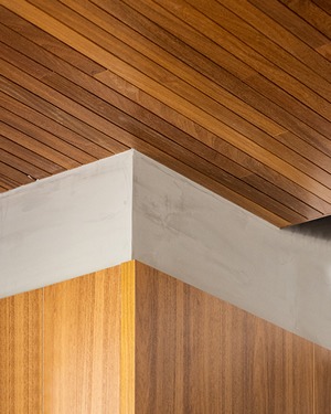 Para compor o forro de madeira, algumas espécies são amplamente usadas, como Cedrinho, Cumaru, Jatobá, Ipê, Pinus, Peroba, entre outras. “É importante dar preferência aos tipos mais duros e, consequentemente, mais resistentes, sem dispensar, é claro, a proteção de verniz ou stain”, comenta Pietro. O modelo composto por ripas de madeira é o mais convencional e na instalação o cuidado é ver o posicionamento da estrutura do forro em relação aos pontos de instalação de iluminação e outras infraestruturas, além de um bom alinhamento das ripas e do nivelamento do forro como um todo.