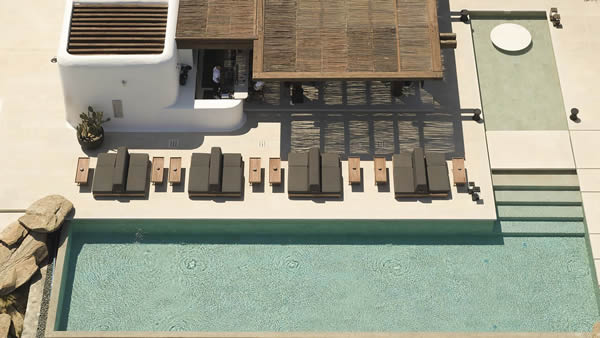 Por sua estética única, o hotel Kalesma Mykonos, na Grécia, é um dos mais modernos da ilha. Seu projeto faz referências às tradicionais vilas de lá, com linhas limpas e materiais como madeira maciça e mármore. A piscina principal, assim como as das vilas, não podia ser diferente! Com borda infinita e vista para o mar, o hóspede tem acesso ao Restaurante Pere Ubu que fica ali mesmo, proporcionando uma atmosfera descontraída durante o dia com música e deliciosos pratos para almoços leves. O Kalesma oferece o “Family Package” que inclui café da manhã, atividades em família, como o Family Cooking Class, check-in antecipado e check-out no horário que desejar, traslado gratuito de chegada e partida. Cinco dias neste pacote saem a partir de € 29.000.