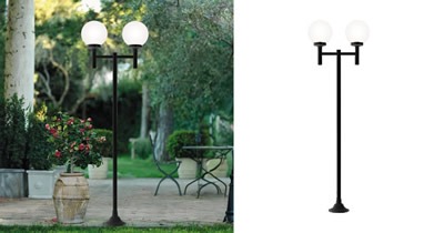 Poste que comporta duas lâmpadas led de soquete E27 (30W). Seu design é indicado para ambientes externos, por conta do seu índice de proteção (IP65). Material: alumínio. Valor – R$ 388 / Imagens: Divulgação Femarte