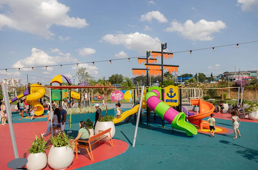 Os adultos podem oferecer orientações sobre como usar equipamentos corretamente e explorar o ambiente de maneira segura e divertida, além de garantir que cada criança esteja brincando em áreas apropriadas para sua idade | Quintalzinho do Ban - Projeto executivo da Effect Arquitetura e conceito desenvolvido pela VM Office junto à Ancar Ivanhoe Shoppings Centers | Foto: Divulgação