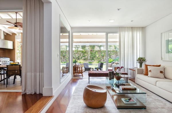 É importante avaliar a incidência de sol e vento do local, buscando recursos para a luz e a ventilação natural serem mais bem aproveitadas durante o dia todo, como neste projeto residencial, onde a solução se apresentou por meio das grandes esquadrias | Projeto da Dantas & Passos Arquitetura | Foto: Maura Mello