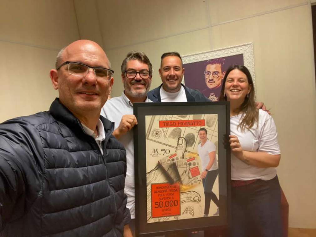 O feito foi comemorado com a entrega de uma placa simbólica durante exibição ao vivo de Os Tremas nos Us, programa diário de audiência estrondosa que Pavinatto apresenta no YouTube.