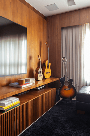 “Consideramos as obras de arte são uma janela para a alma do espaço e elas não estão restritas às pinturas de quadros, mas também englobam as fotografias, esculturas, objetos e móveis de antigos e contemporâneos. À medida que o ambiente incorpora a essência do morador, a sensação de conforto e familiaridade se intensificam”, esclarecem as arquitetas da Dantas & Passos Arquitetura.