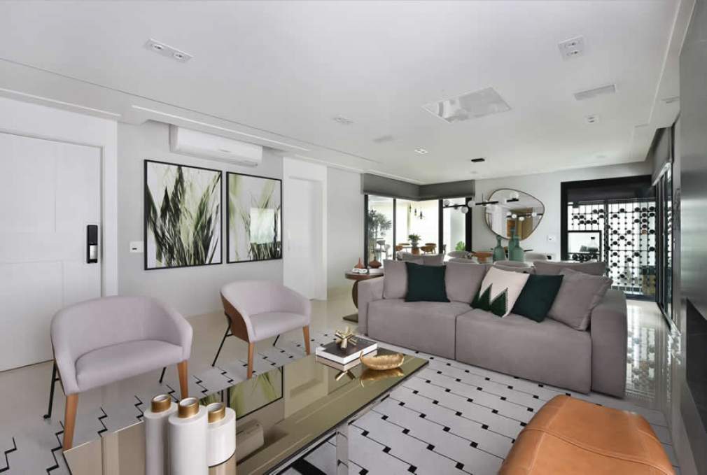 Com uma área total de 268m², a arquiteta não precisou atuar em todos os espaços. De acordo com o desejo deles, o projeto concentrou-se na reforma da varanda gourmet, sala de estar, sala de TV e hall de entrada, além de dois cômodos específicos da ala íntima: o banheiro do casal e o dormitório da filha. “Assim, nos concentramos em idealizar uma nova arquitetura de interiores para os 124 m² que ficaram funcionais e supermodernos”, conta. Acompanhe a transformação: