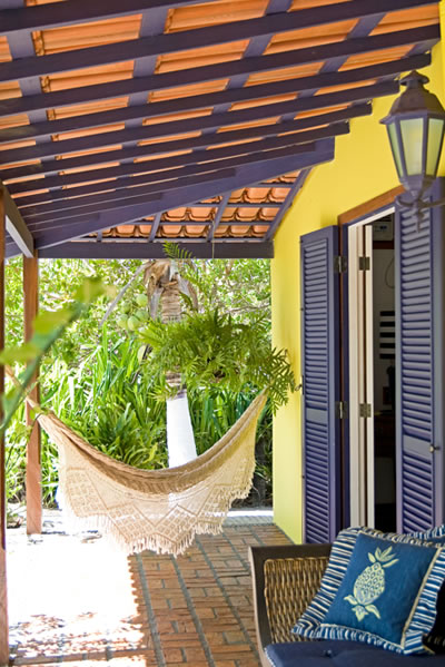 Até nas esquadrias e estrutura do telhado é válido apostar em uma cor diferente, como foi o caso desta casa, no litoral sul da Bahia. A nuance mais escura foi um elemento chave para ajudar a criar um ambiente vivaz, que faz jus ao Estado ensolarado | Korman Arquitetos | Foto: Gui Morelli