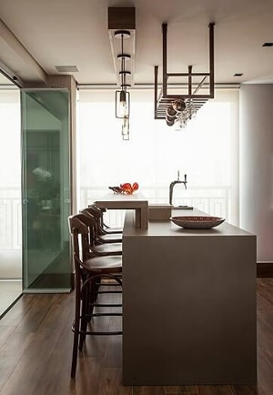 Na cozinha projetada pela arquiteta Patricia Mello, a bancada para refeições rápidas| Foto: Luis Gomes