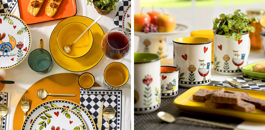 A empresa Imeltron traz toda a alegria da marca Egan com os utensílios de cozinha da coleção Cocoricó em porcelana / Divulgação ABUP