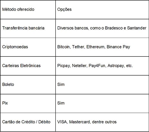 Ficou em dúvidas a respeito de qual método de pagamento escolher? Nós fizemos um ranking das melhores formas a seguir, porém, isso depende do seu próprio perfil enquanto jogador.