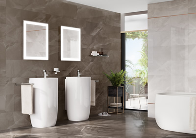 Com design harmônico e atemporal, a coleção Inspira traz a delicadeza das bordas finas para o banheiro. | Foto: Divulgação Roca