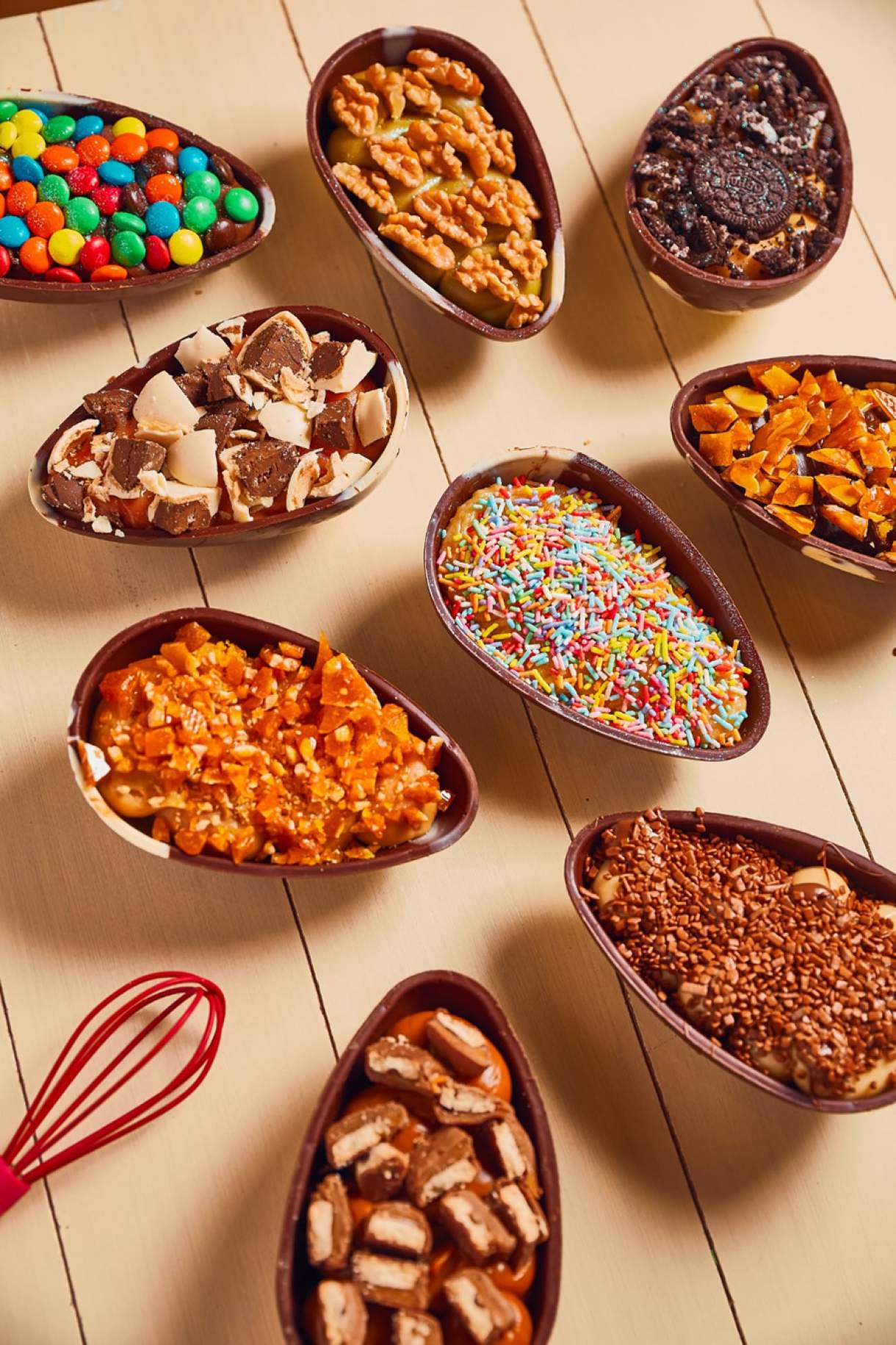 O destaque deste ano é o Ovo de Colher, que pode ser montado na hora. Com a casca de chocolate preto e branco mesclado de fabricação própria, o consumidor pode escolher uma opção de recheio e um topping, que possibilitam infinitas combinações.