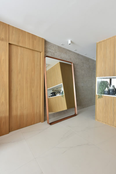 Mas não só pela versatilidade das sensações que o porcelanato é aclamado. Combinado com o conforto visual, Rosangela também considera a resistência e facilidade de manutenção como outros fortes atributos para todos os ambientes residenciais e áreas de alto tráfego, que não se limitam aos ambientes internos e são ideais para garagens, varandas e terraços. “A capacidade de se adaptar a diferentes espaços, aliada à sua beleza, reforça a posição do porcelanato como sofisticado e super adequado”, comenta Rosangela.