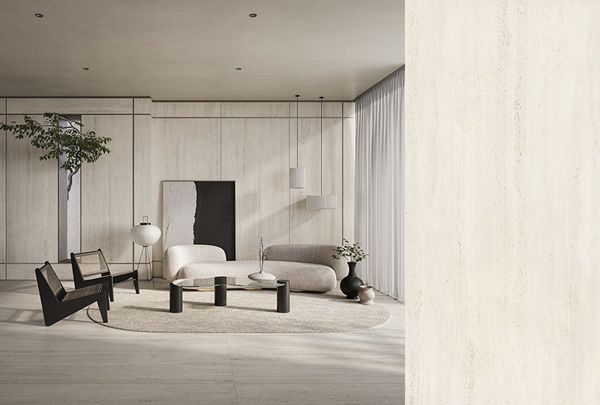 A atemporalidade e o caráter longevo do Mármore italiano Travertino é apreciada na Série Navona, que além dos Superformatos, conquistou a flexibilidade do formato 60 x 120 cm.