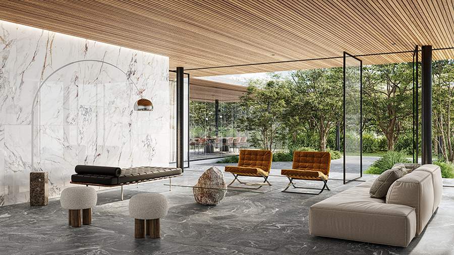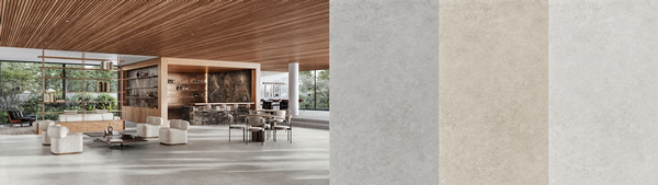 A Roca Cerámica expande os atributos dos Superformatos com sua vasta amplitude de medidas (120 x 120 cm | 100 x 200 cm | 120 x 250 cm | 160 x 160 cm e 160 x 320 cm), que abrangem o realismo da expressão estética nos projetos de arquitetura.
