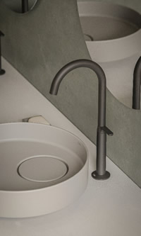 A torneira para lavatório de bica alta Design tem desenho elegante e acionamento delicado que facilita o acionamento até mesmo com as mãos molhadas. Disponível no cromado, preto matte e rose gold matte | Fotos: Divulgação Celite