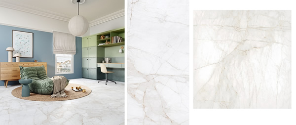 Os veios cinzas e os rajados levemente dourados sobre o fundo off-white conferem à Série Marmo Real uma grande potência visual. O olhar contemporâneo da marca combina a elegância do mármore com a alta tecnologia envolvida na fabricação do porcelanato que, com sua borda retificada, permite a aplicação usando juntas mínimas de 1 mm – uma discrição que realça ainda mais a sofisticação da série.