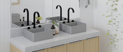 Para acompanhar o portfólio de cubas, a linha Design também conta com torneiras de bica alta, bica baixa e de parede na cor preto matte e no tradicional acabamento cromado. Altamente versáteis, assim como as cubas se encaixam nos mais diversos estilos de projetos por conta do desenho elegante e acionamento delicado.