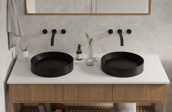 A suavidade do desenho e bordas finas da cuba de apoio D4 é complementada pela instalação com o upper deck | Foto: Divulgação Celite