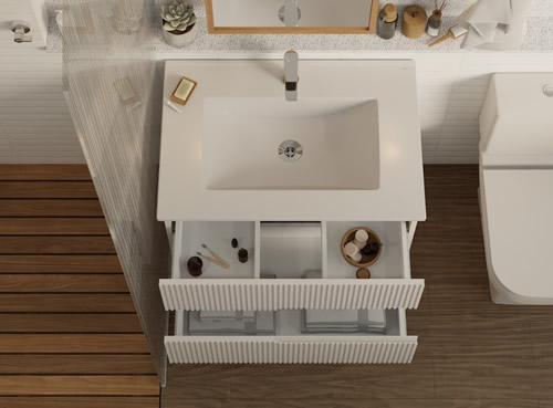 Com gavetas espaçosas, o gabinete Elite resolve um problema comum em banheiros e lavabos sem perder a elegância do bom design: a falta de espaço de armazenamento | Foto: Divulgação Celite