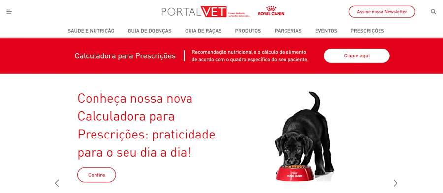 A plataforma, acessível via desktop e celular, tornou-se uma aliada indispensável para atualização profissional, facilitando o dia a dia do Médico-Veterinário no atendimento clínico. Além da calculadora, o Portal Vet oferece acesso exclusivo a artigos científicos, informações sobre eventos do setor pet e o portfólio da marca, com destaque para a linha de Nutrição Veterinária. Com o compromisso de compartilhar conhecimento, a ROYAL CANIN® criou uma biblioteca de conteúdos que são atualizados periodicamente, abordando temas como principais doenças em gatos e cães, possíveis sintomas, saúde preventiva e nutrição individualizada e específica, como suporte ao tratamento indicado por um profissional.