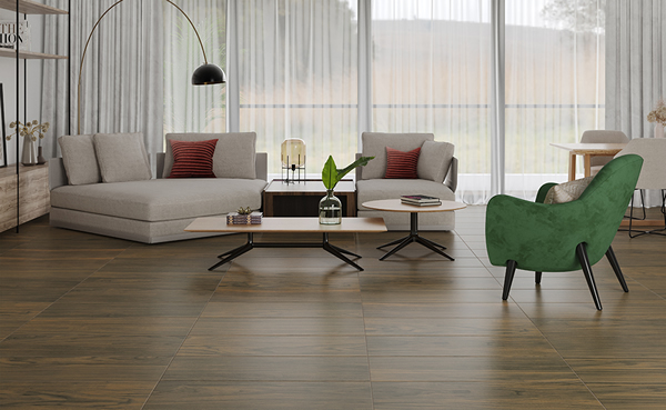 Os tons mais escuros e com estética envelhecida da madeira denotam o estilo rústico bastante buscado para os projetos. A Série Legno Negro, da Roca Cerámica, na opção preto e dimensão 20 x 120 cm, captura fielmente a beleza da madeira envelhecida graças à tecnologia avançada de impressão digital em alta resolução.