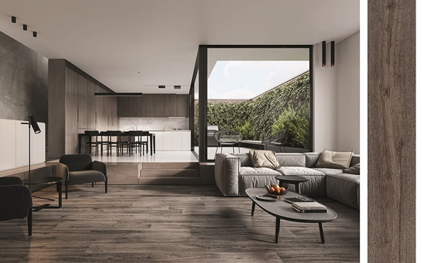 O acolhimento dos revestimentos de madeira na versão porcelanato