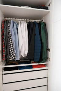 - A limpeza no guarda-roupas deve ser feita quinzenalmente e, caso o ambiente já sofra com problemas de umidade, a compra de pastilhas antimofo, encontradas facilmente em supermercados, auxilia na eliminação da umidade e ainda perfuma o armário.