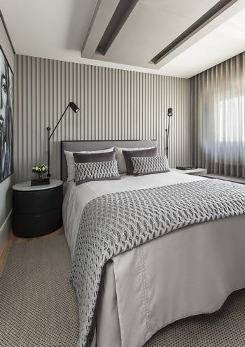 Promover um consenso entre eles é o caminho adotado pelas profissionais. “O intuito é sempre o de entregar romantismo, leveza e relaxamento”, analisa Danielle. Entre as possibilidades, o cinza é uma forte tendência para quartos de casais, uma vez que se trata de uma cor que é neutra, apresenta diversas nuances e combina muito bem com outros tons.