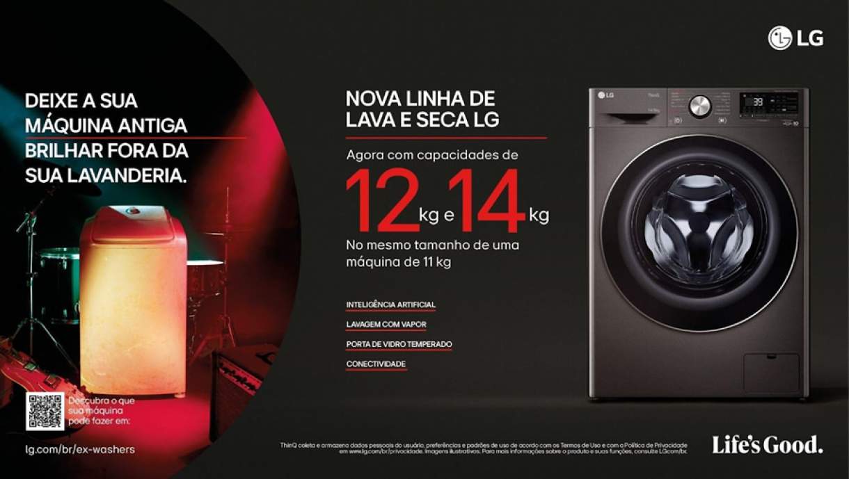 Campanha Ex-Washer divulga a nova linha de Lava e Seca Smart LG. Crédito: Divulgação LG