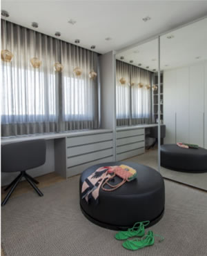 A introdução de espaços multifuncionais são atores que entram em cena para a reinvenção do lar. Por oferecerem diversas utilidades em um único ambiente, tornam-se uma excelentes estratégias para maximizar o aproveitamento das áreas disponíveis. “Eles nos auxiliam na visão criativa do projeto”, conclui a dupla de arquitetas.
