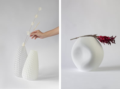 Nas imagens, os vasos Abacaxi e Amasso feitos em impressoras 3D / Divulgação ABUP