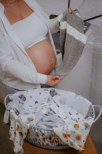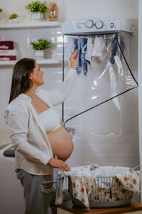 Enquanto a chegada do bebê se aproxima, as mães se dedicam a cada mínimo detalhe para que tudo esteja pronto. Este cuidado inclui a lavagem cuidadosa das roupinhas, um processo essencial para o conforto e bem-estar do recém-nascido! | Foto: Divulgação Mueller